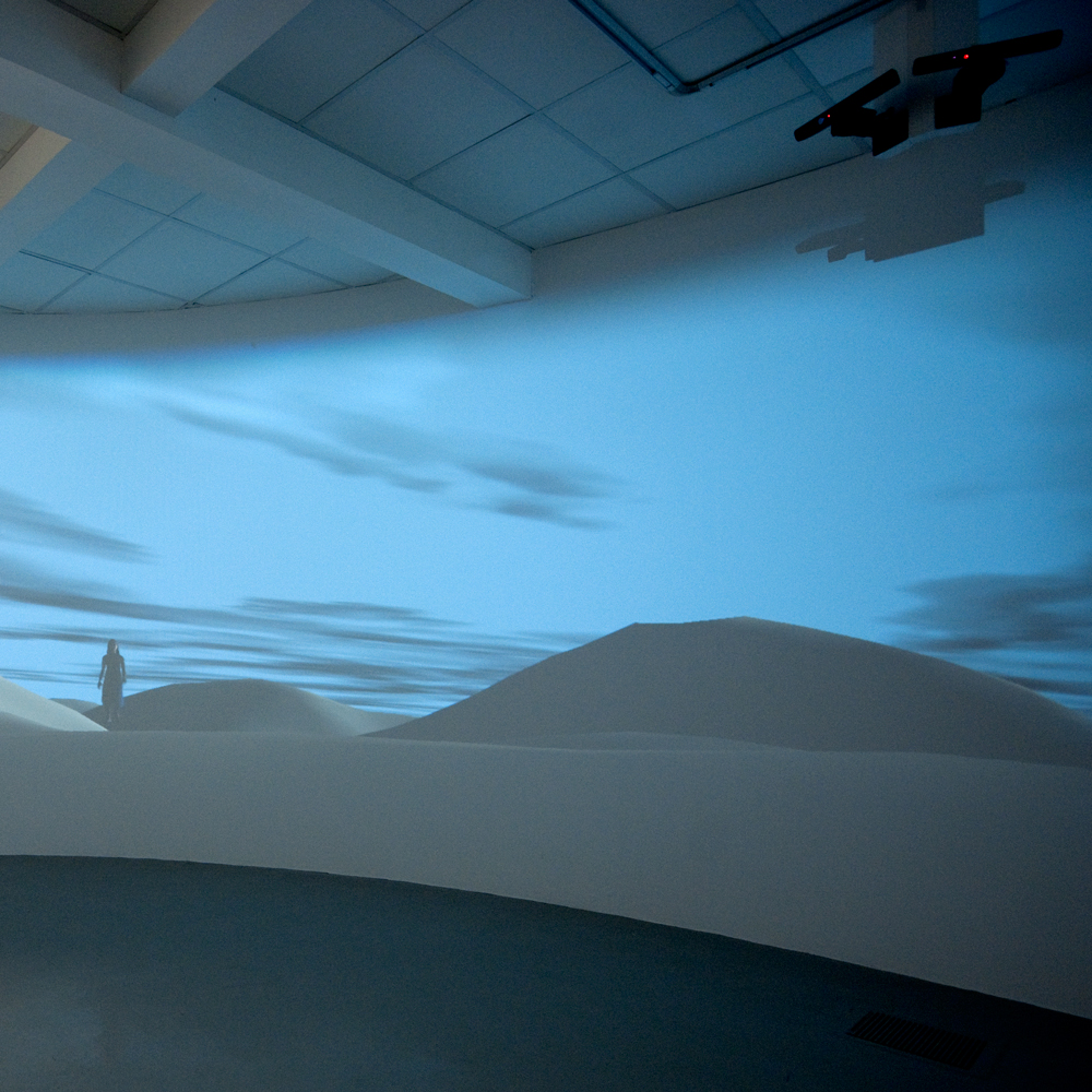 Apparent Horizon renders immersive, virtualised vistas of a desert landscape. As viewers, our role hovers between sublime reverie and the quiet anxiety between of periods of violence. The exhibition ends with a final cinematic flourish, enabling visitors to consider their role in the exhibition and its dialogue of control, observation truth and contradiction.