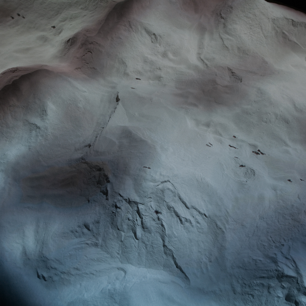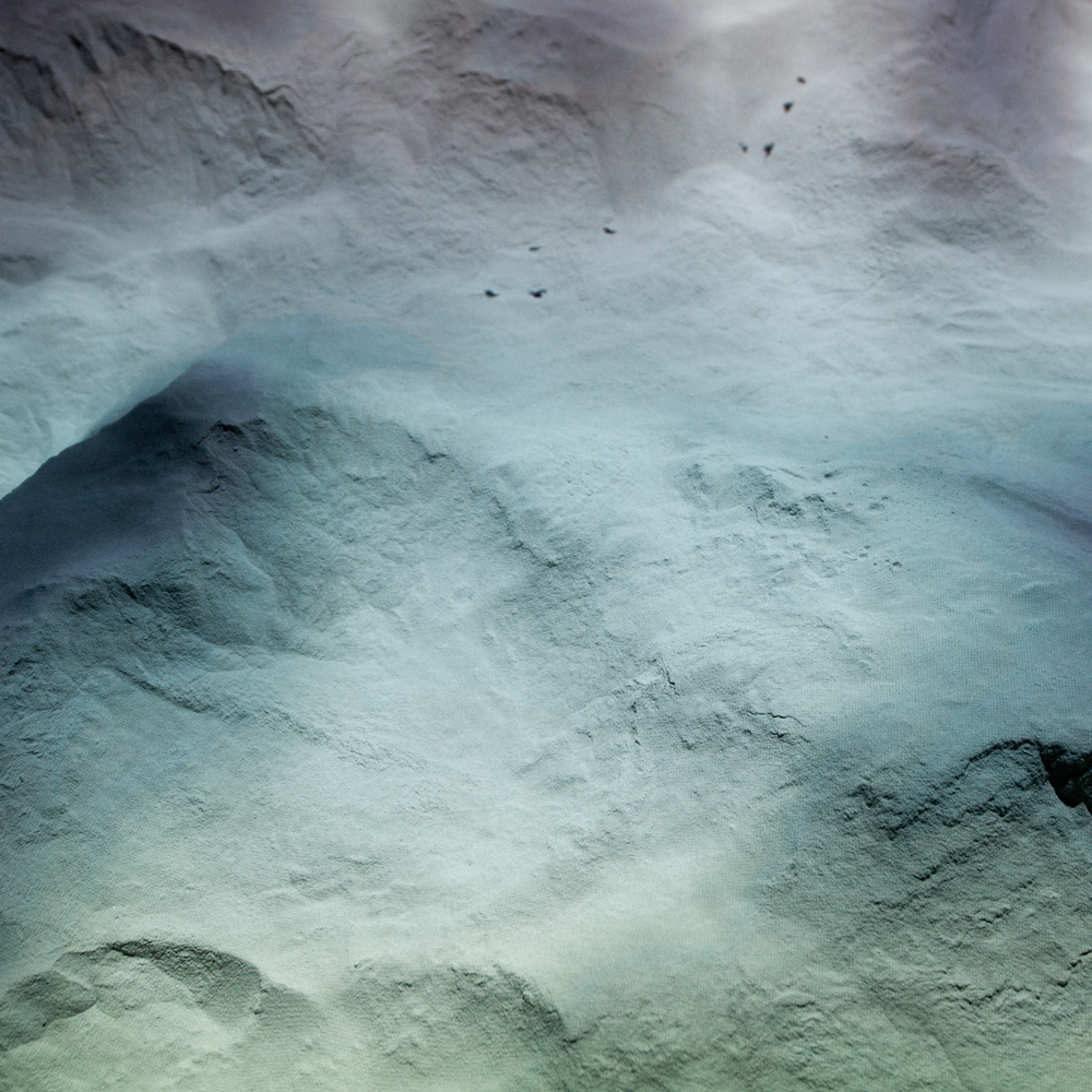 Searchlight 2 reveals illusory human shadows traversing a low platform terrain, suggestive of the desert landscape as seen by an aerial drone. The unnerving movements of this unidentified population are computer-generated and directly mirror the actions seen in Observer Effect. Working with creative 3D technology specialists Inition, David captured the desert scene using the latest 3D scanning technology