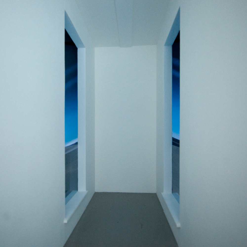 The series of four works works are bound together through an interest in dislocation and paranoia. The visual vocabularies being employed are extrapolations of existing commonplace convention, referencing cinematic, literary, simulation and gaming constructs. By subverting the context, Cotterrell seeks to create an environment that challenges our belief in the understanding of documentary, and the ‘truth’ of film and photographic images.