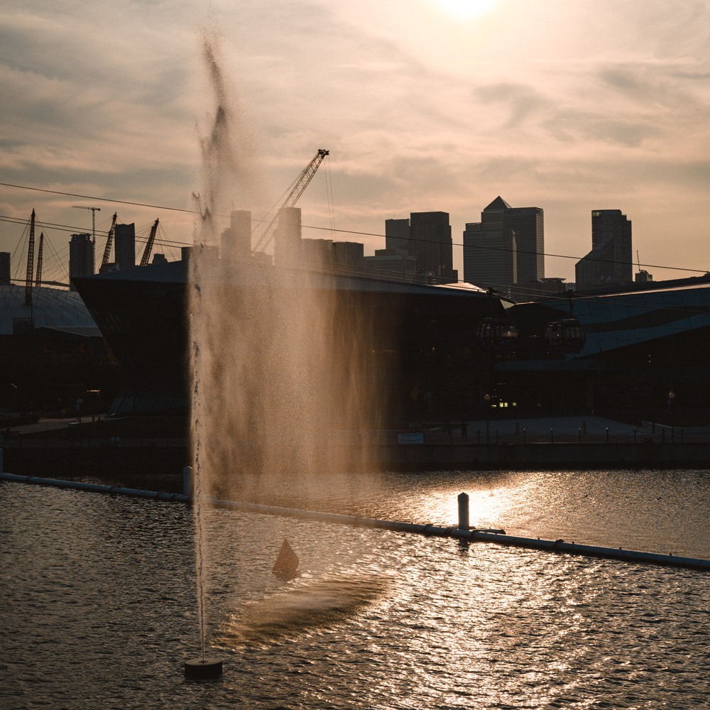 25 years after its original installation (in a small park in Birmingham), the geyser was witnessed again in East London's Royal Albert Docks. Located in the Royal Docks, it was viewable from the IFS Cloud Cable Car, the dockside near Canning Town and the streets and nearby buildings around the new City Hall. As one of the key commissions for the London-wide Thames Festival cultural program, this represented a dramatic return for one of Cotterrell's first public projects.